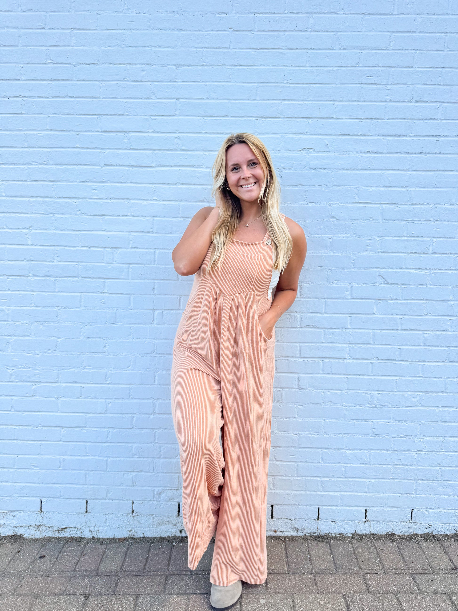 - Details: Ribbed texture, wide-leg overalls, adjustable straps, side pockets, and back pockets.
